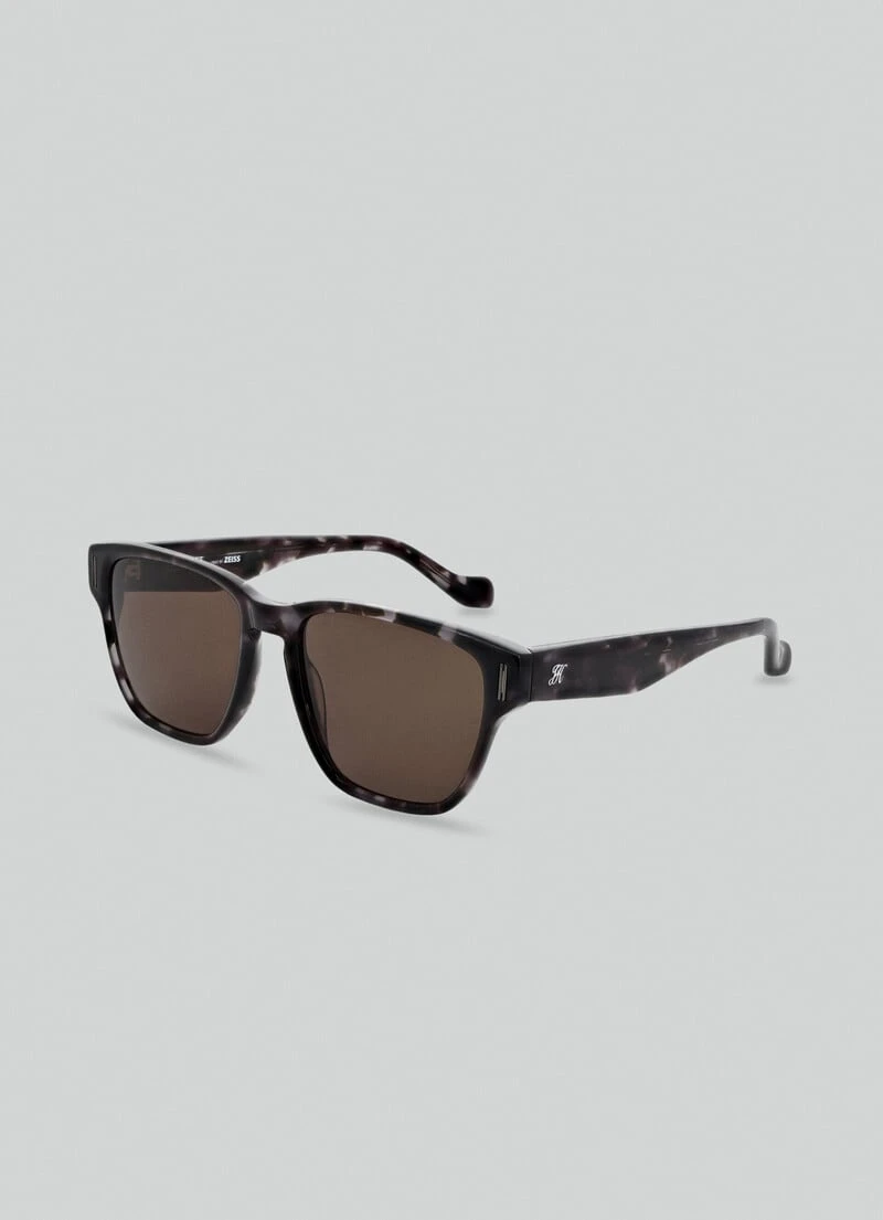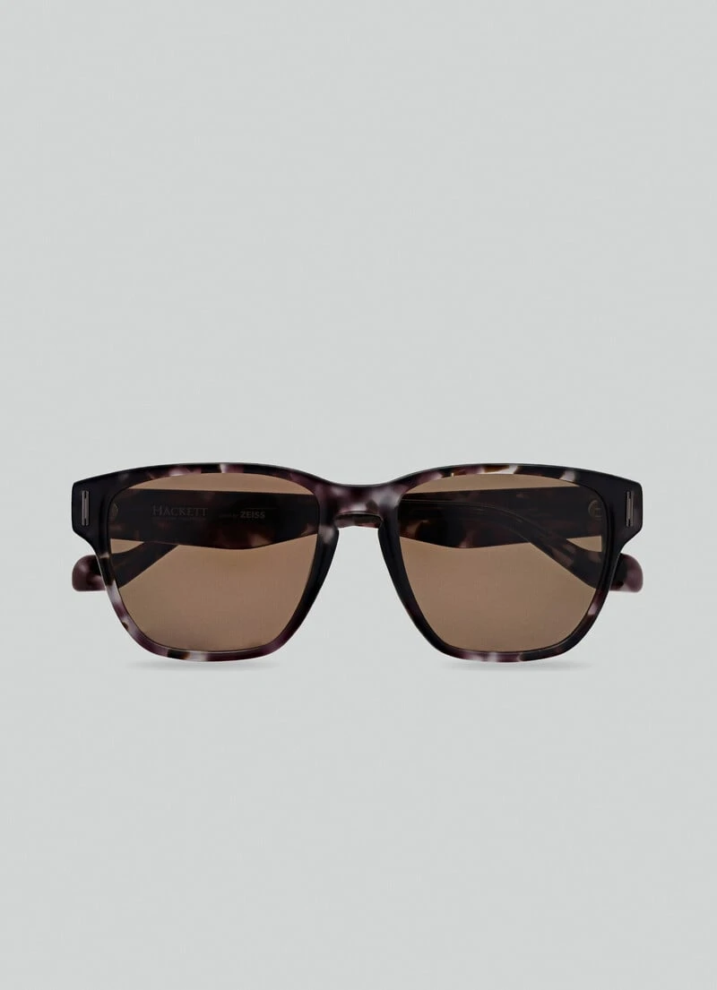 A retro take on the Clubmaster look, these sophisticated sunglasses feature Jeremy Hackett’s signature on sleek black tortoiseshell.