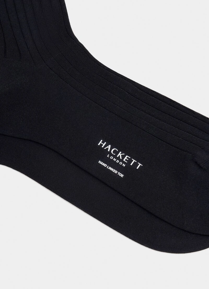 These socks offer superb durability and do not shrink when washed due to their soft, mercerised cotton. The classic ribbed design and sober, solid colour is perfect to combine with one of our seasonal formal suits.